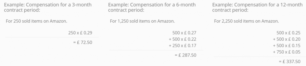 Bei der gleichen Provisionsrate von 0,05€ pro verkauftem Artikel kostet der Repricer 3.500€, im Gegensatz zur gleich bleibenden Flatrate von bis zu 350€.