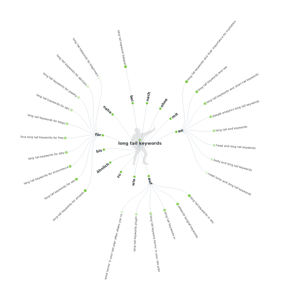 Ein geniales Tool um die Relevanz von Long Tail Keywords herauszufinden ist Answer the Public. Tippen Sie einfach Ihr Keyword in das Suchfeld, wählen die richtige Sprache aus und klicken auf „Get Questions“.